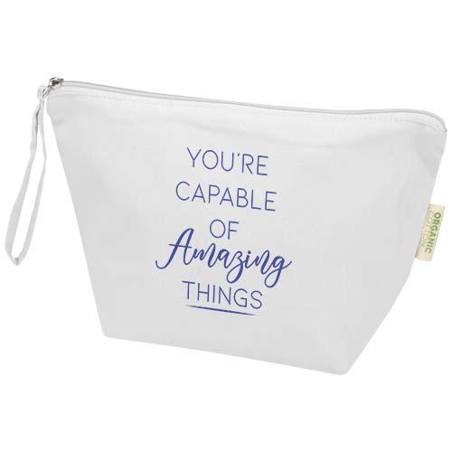 A bolsa grande para acessórios “Odisha” é feita de 100 % algodão orgânico de 180 g/m² com certificação OCS originário da Índia. Inclui um grande compartimento com fecho de correr e uma pega de mão para transportá-la facilmente. Capacidade volumétrica: 3 litros.
