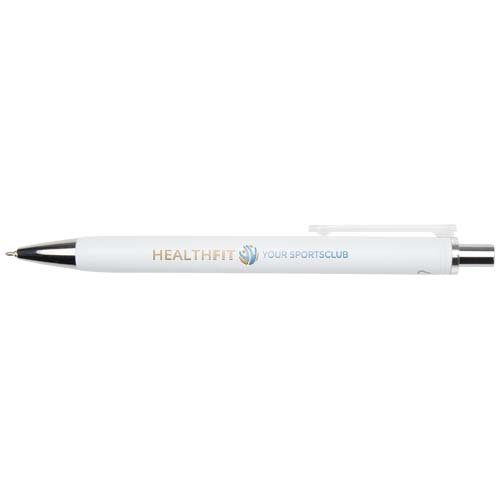 A esferográfica “Feld” com acabamento metálico combina funcionalidade diária com um visual elegante. Feita de plástico ABS reciclado com certificação RCS, esta esferográfica apresenta um acabamento metálico brilhante pulverizado, com detalhes em cromado polido. O seu mecanismo suave de pressionar e recarga de tinta semi-gel garantem uma experiência de escrita confortável e suave. Cor da tinta da caneta: preta. Comprimento de escrita: 500 m. Tamanho da ponta: 0,7 mm.
