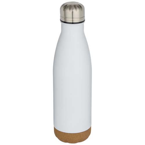 Garrafa de água de aço inoxidável com isolamento a vácuo e detalhes de cortiça no fundo. O isolamento de parede dupla mantém as bebidas quentes ou frias durante várias horas. Apresentada numa caixa de presente de cartão reciclado. Capacidade volumétrica: 500 ml.